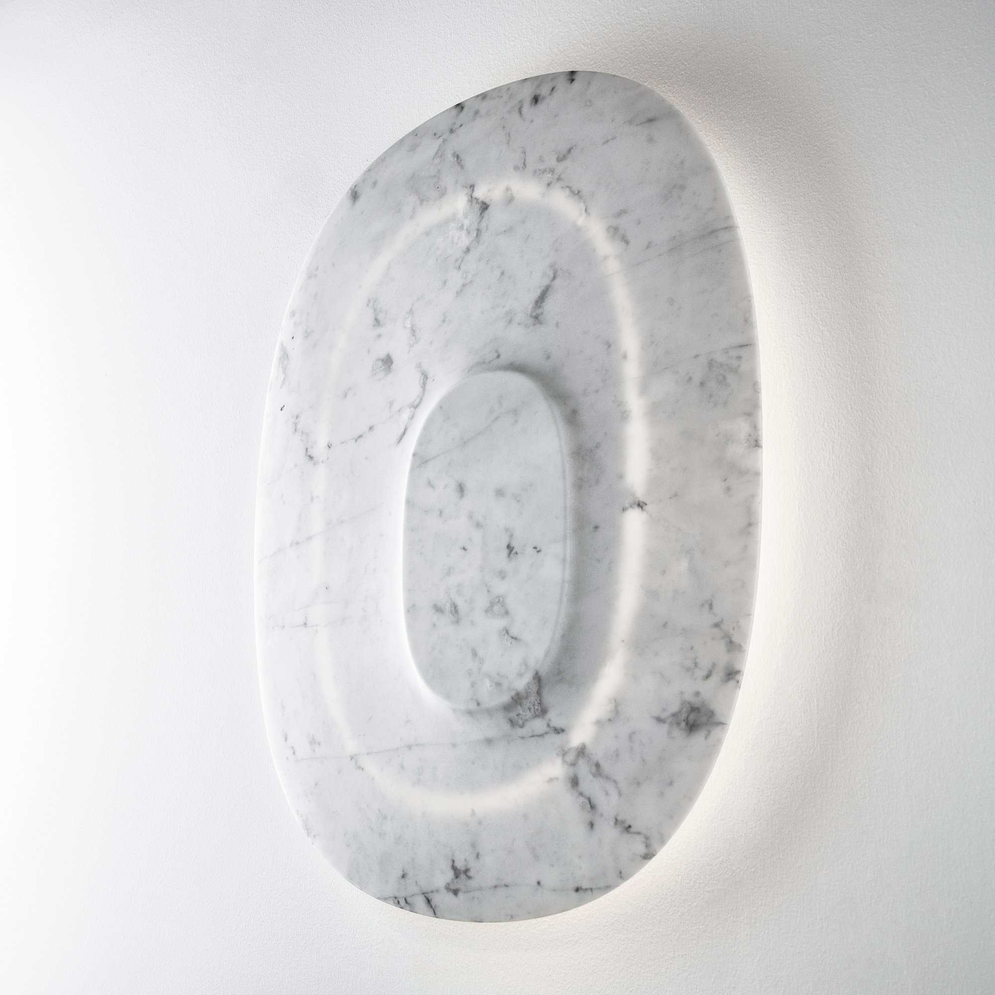We sculpted the surface as if it were fabric, tracing simple marks, engravings that capture light and shape it into vibrant chiaroscuro effects. The result is an element in constant motion, multiplying to generate ever-changing patterns: oblique lines, geometric interweavings, chaotic signs that recompose into harmonious order.